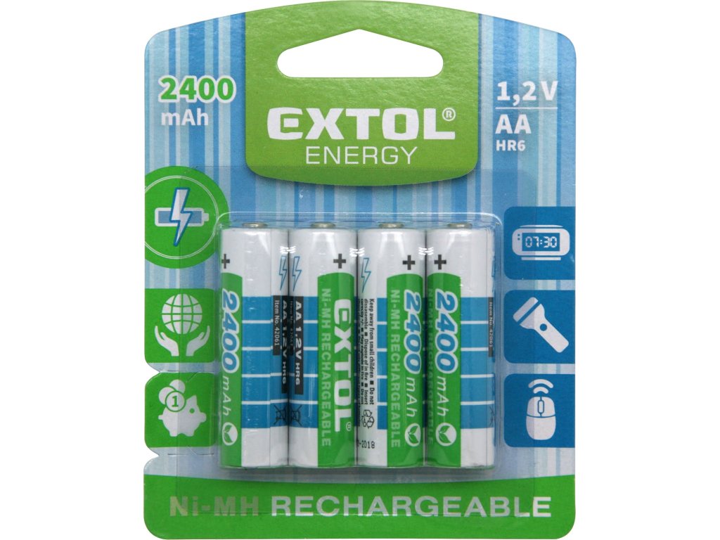 EXTOL ENERGY 42061 baterie nabíjecí, 4ks, AA (HR6), 1,2V, 2400mAh, NiMh
