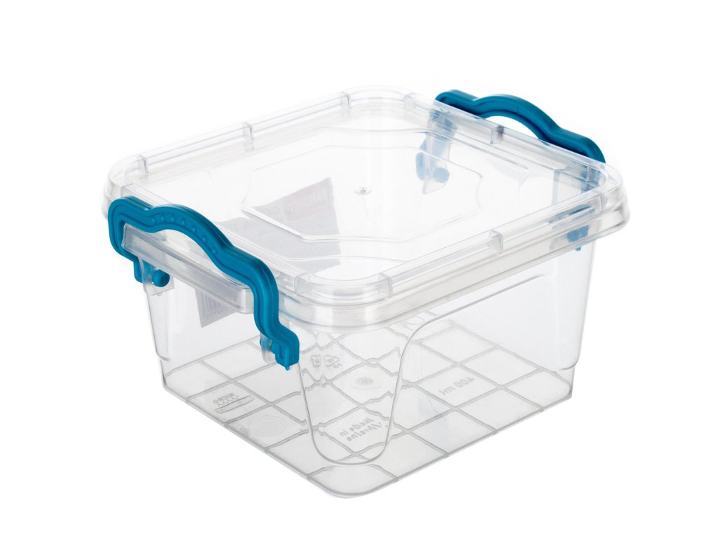 barva: transparentní box, tyrkysová madla