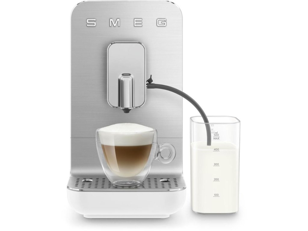 Espresso,Smeg BCC13WHMEU,,Systém ohřevu s termoblokem, který zajišťuje rychlejší přípravu kávy a přesnou regulaci teploty vody pro extrakci kávy,Zabudovaný mlýnek na kávu, pravá chuť kávy z čerstvě namletých kávových zrn,,Od zrna k šálku hotové nápoje stisknutím tlačítka,Kompaktní a prostorově úsporný,Dokonalá pěna pro každý nápoj díky integrovanému systému na mléko,,Tlak čerpadla 19 barů pro vždy správnou extrakci espressa,Multinápoje 5 kávových nápojů, 4 mléčné nápoje a funkce horké vody