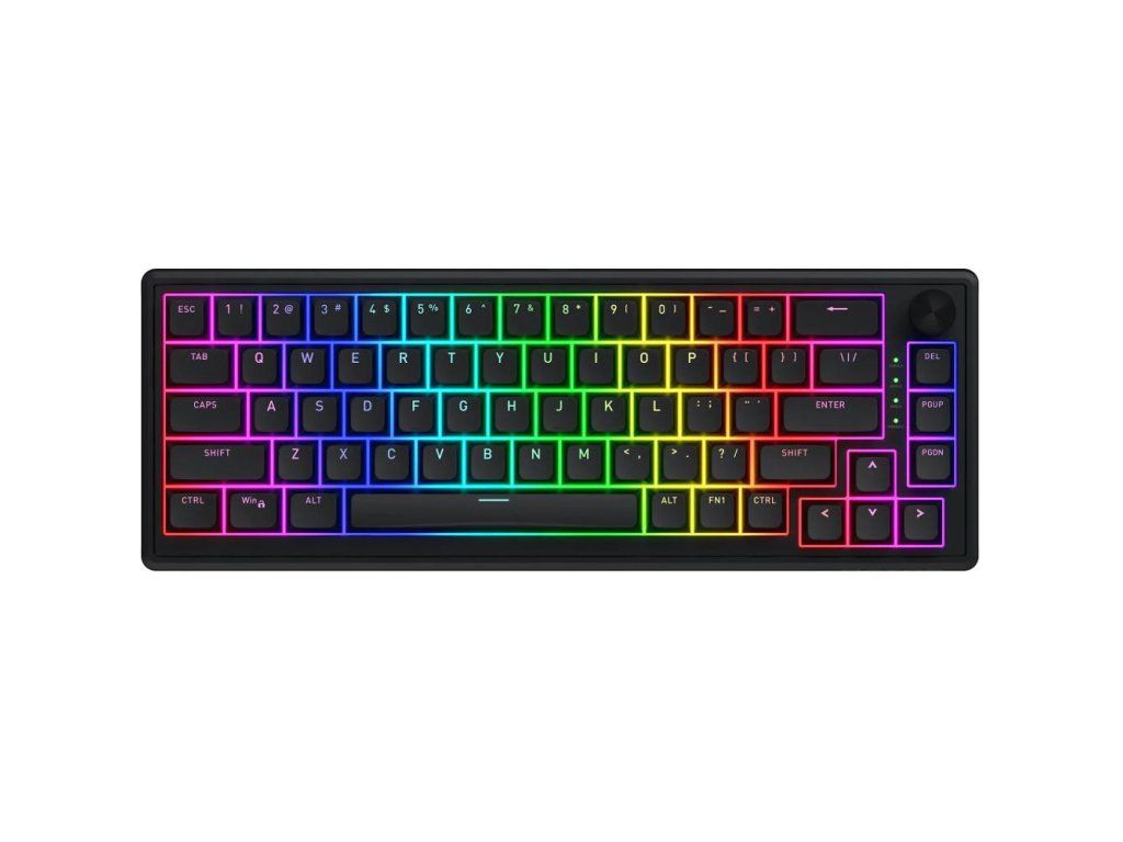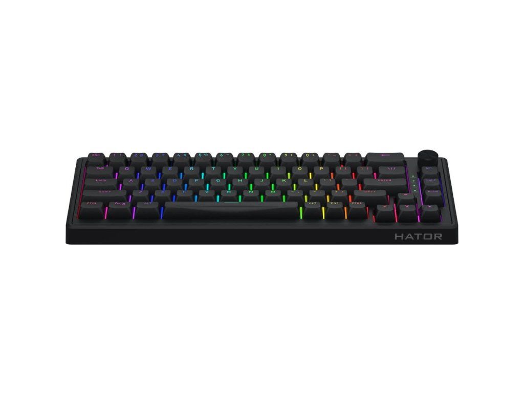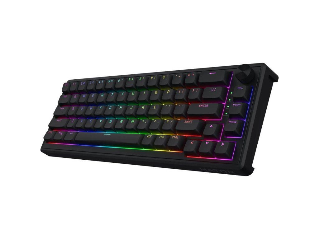 Herní klávesnice,Hator Skyfall 65 Black, US,,Provedení klávesnice: Drátová, Herní,Formát: Kompaktní (65%),Rozložení klávesnice: US,Snímače kláves: Mechanické,Typ kláves: Vysokoprofilové,Kompatibilita: Google Chrome OS, iPadOS, Linux, MacOS, Windows 10, Windows 11,,Připojení klávesnice:,2,4 GHz,Bluetooth,USB-A,USB-C,Délka kabelu: 1,8 m,Podsvícená: RGB,Barva switch: Yellow,,Rozměry (VxŠxH): 4,3 x 33,5 x 12,2 cm,Hmotnost: 715 g,Barva: Černá