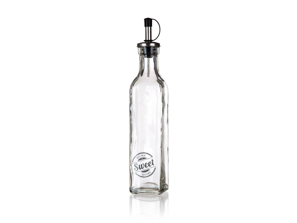 Láhev na olej s dekorem SWEET HOME hranatého tvaru, vyrobená ze skla, je ideální pomocník do kuchyně.