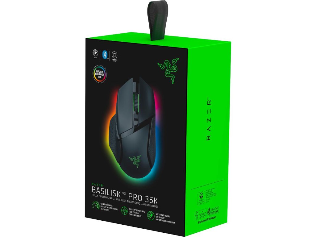 Herní myš,Razer Basilisk V3 Pro 35K Black,,Provedení herní, bezdrátová,Ergonomie pro praváky,Připojení 2,4 GHz + Bluetooth + USB,Rozhraní USB-C,Typ snímače optický,Podpora bezdrátového nabíjení,Podsvícení RGB,Software podporován,Bez tichých tlačítek,Nastavitelné rozlišení,Programovatelná tlačítka,Bez závaží,Další vlastnosti odnímatelný kabel,,Délka kabelu 1,8 m,Maximální rozlišení DPI 35000,Počet tlačítek 11,Typ baterií interní baterie,,Rozměry (VxŠxH) 4,2 × 8 × 13 cm,Hmotnost 160 g,Part Number RZ01-05240100-R3G1,,Barva černá