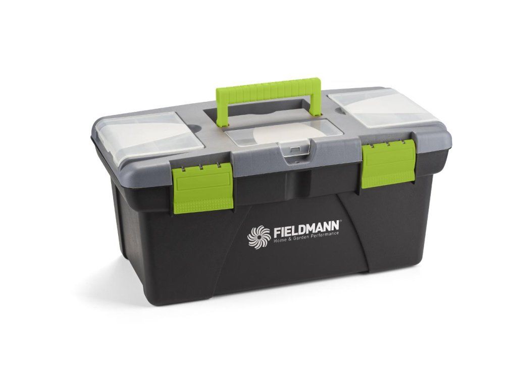 Box na nářadí,Fieldmann FDN 4116,,Box na nářadí Fieldmann FDN 4116 je ideální pro uskladnění nářadí v malé dílně, v bytě, na chatě, v autě... Tento produkt je vyroben z kvalitního plastu a v horní části nabízí prostor na drobné předměty, třeba bity, hmoždinky či vruty.,Uvnitř je k dispozici vyjímatelný organizér s madlem. Praktické jsou plastové zámky, které zajistí pevné uzavření a bezpečnost uložených věcí např. při převržení.,,Klíčové vlastnosti:,Pevné plastové zámky,Rozměry: 415 x 210 x 190 mm,Ergonomické madlo pro snadné přenášení,Průhledný organizer na bity, hmoždinky a vruty v horní čás