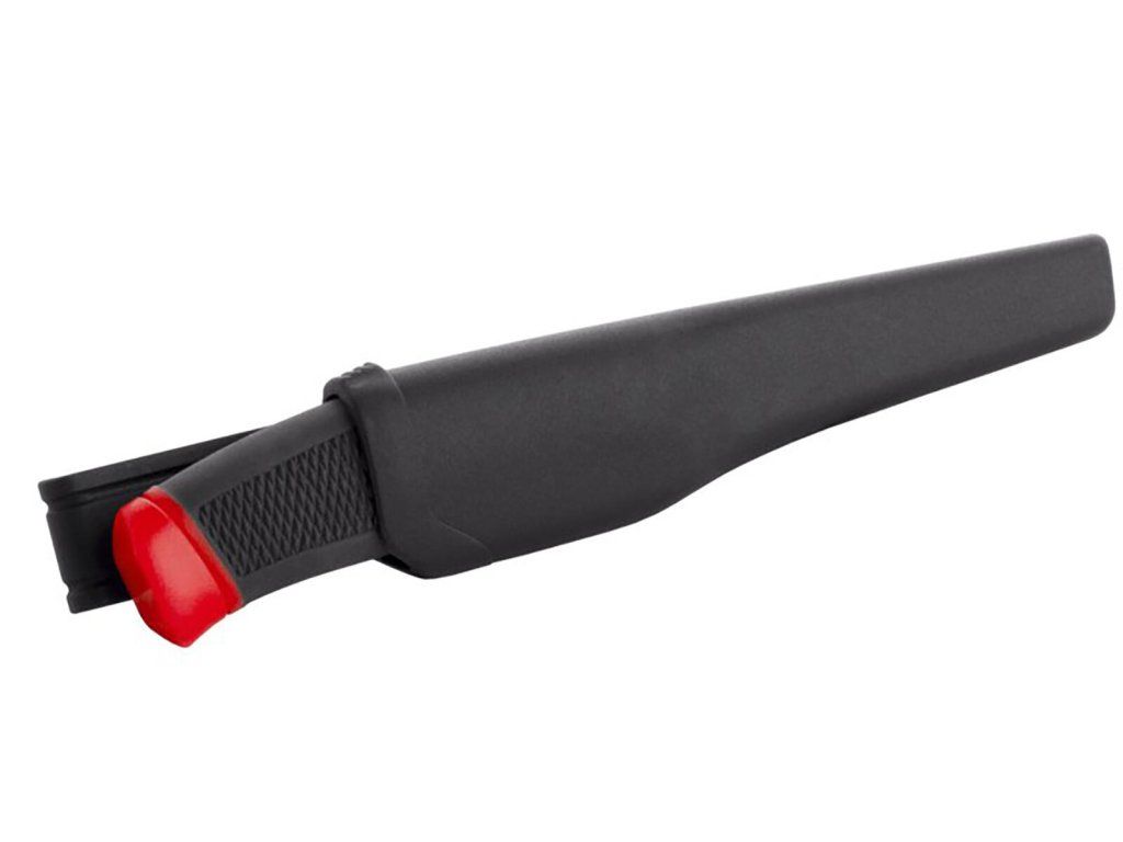 Nůž se zesílenou čepelí, plastová rukojeť, kožené pouzdro s klipem na opasek.