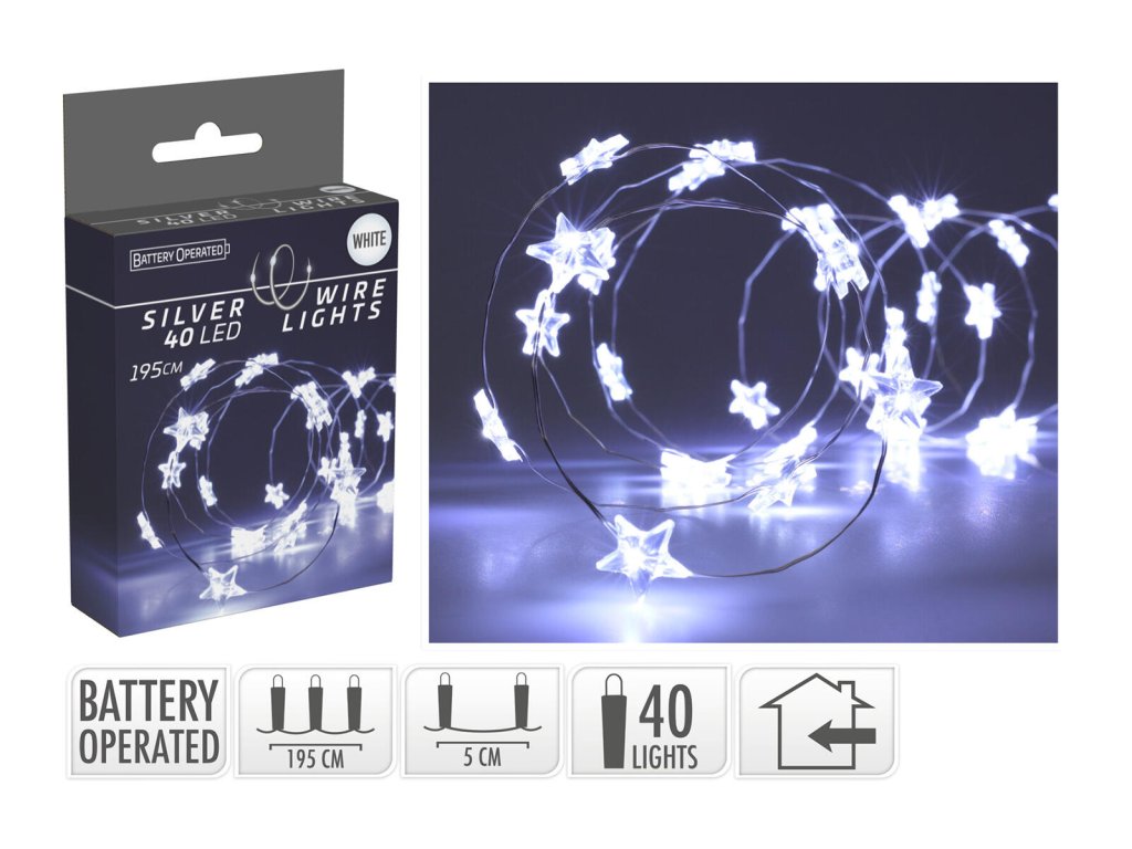 Osvětlení vánoční 1,95 m, 40LED, studená BÍ, drát, HVĚZDY.