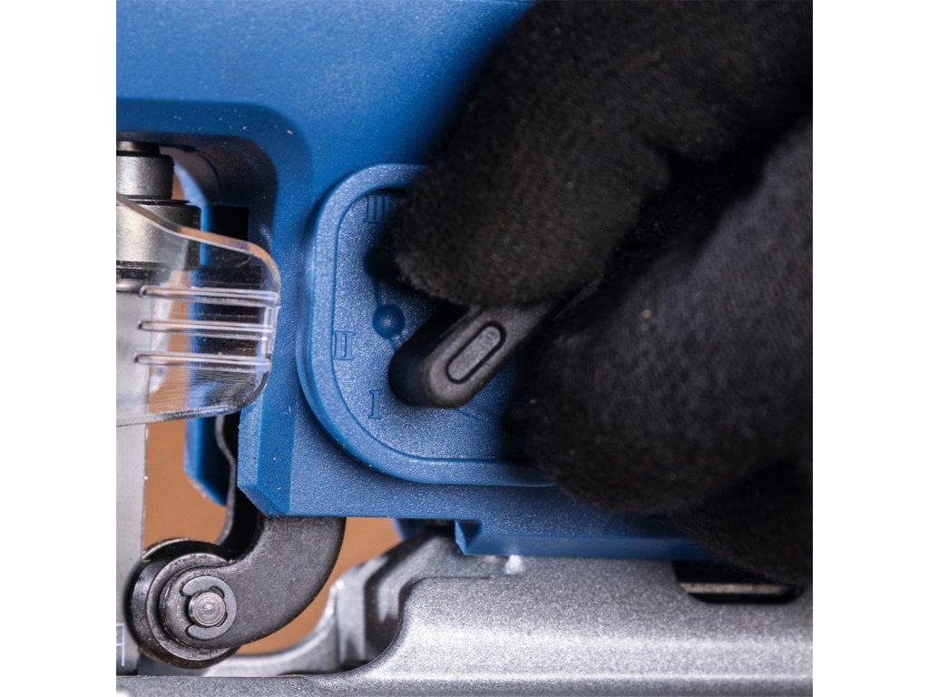 Konstrukce pily umožňuje řezat v mnoha různých úhlech, provádět dlouhé paralelní řezy nebo obloukové řezy. Stroj má snadné jednoruční ovládání, elektronické nastavení rychlosti, funkci ofukování pracovního prostoru, LED osvětlení pracovního prostoru s 10 s prodlevou po vypnutí stroje a 3-stupňové nastavení předkmitu pro nastavení rychlosti řezání.