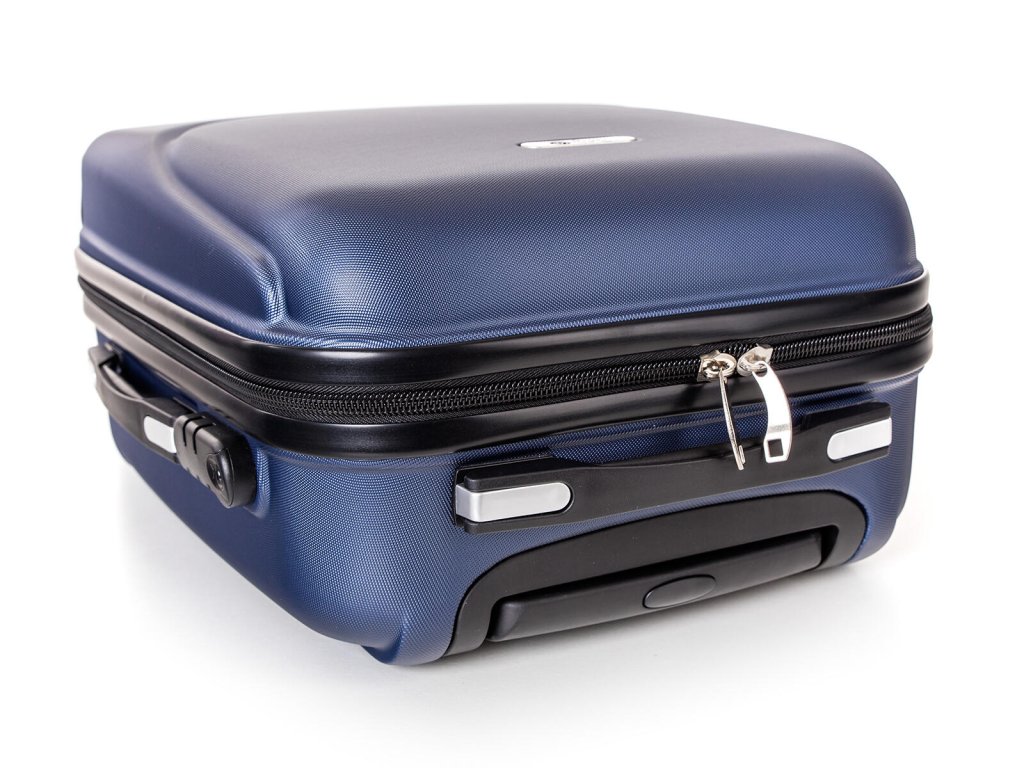 Cestovní skořepinový kufr na kolečkách ABS16, velikost S, v modré barvě, je vyrobený z kvalitního plastu ABS, který je odolný proti nárazu.