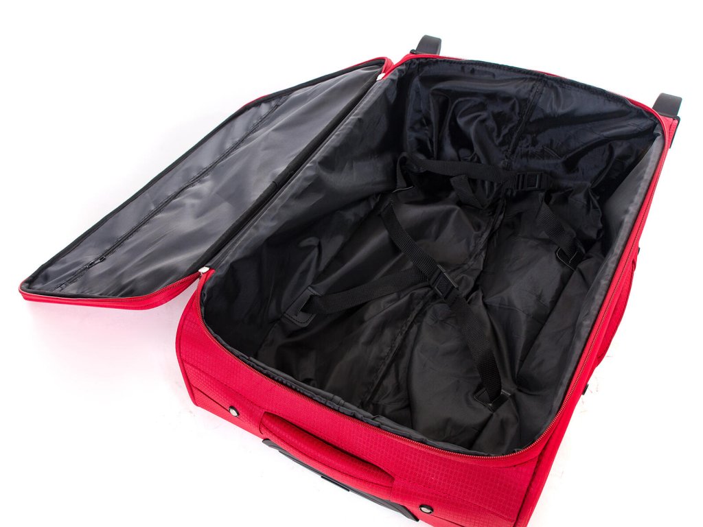 Cestovní textilní kufr TEX15, velikosti S, v červené barvě,, je vyrobený z textilie, což ocení především cestovatelé, pro které je důležitá nízká hmotnost zavazadla.