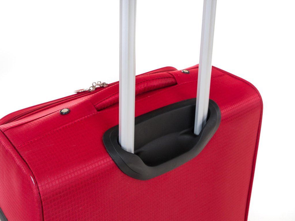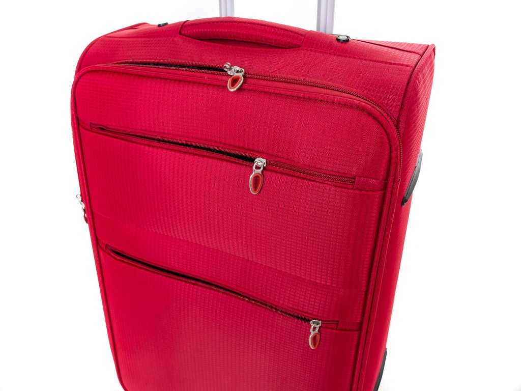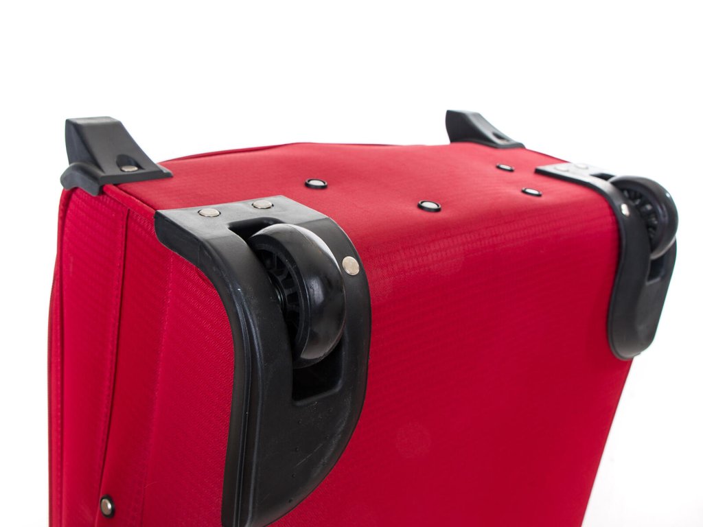 Cestovní textilní kufr TEX15, velikosti M, v červené barvě,, je vyrobený z textilie, což ocení především cestovatelé, pro které je důležitá nízká hmotnost zavazadla.