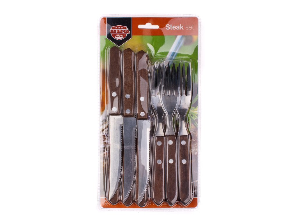 Příbor steakový BBQ (6+6ks) nerez, dřev.rukojeť tm.