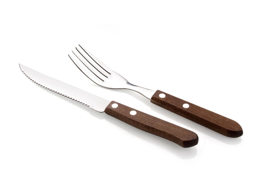 Příbor steakový BBQ (6 + 6 ks) nerez, dřevěná rukojeť, tmavá.