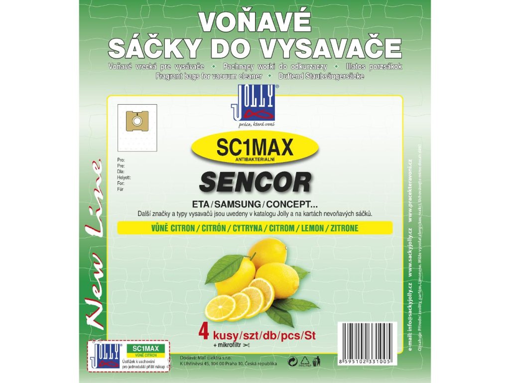 Voňavé textilní sáčky s vůní citronu,Sáčky (4 ks v balení) ETA, Concept, Sencor + náhradní univerzální mikrofiltr k zastřižení