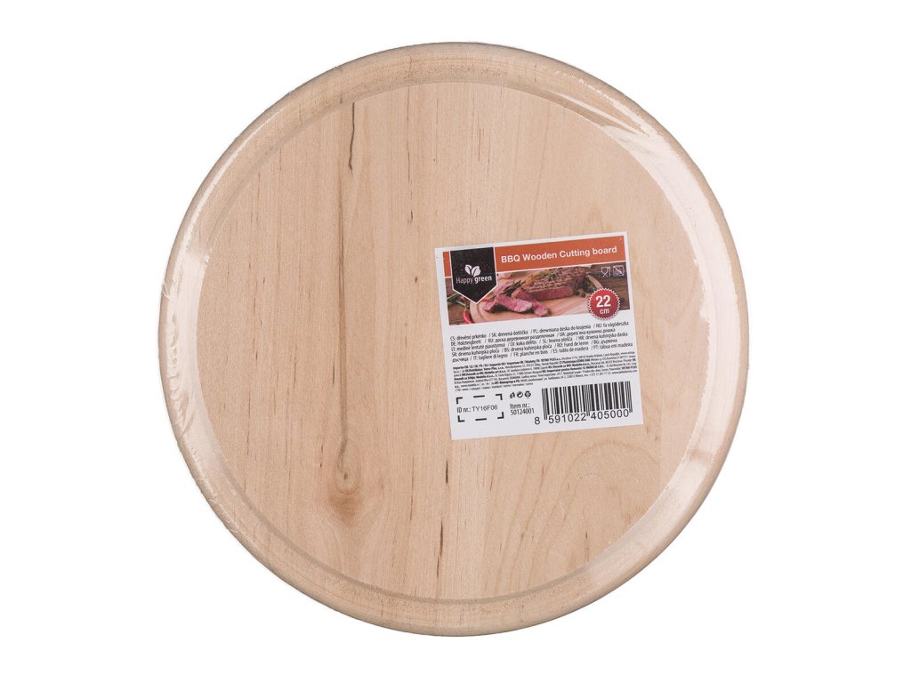 Prkénko má kulatý tvar s drážkou po okraji a je vyrobeno z březového dřeva.