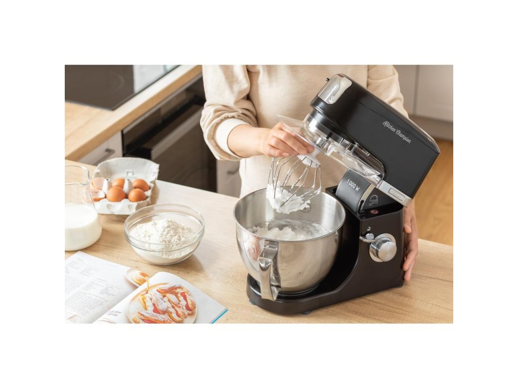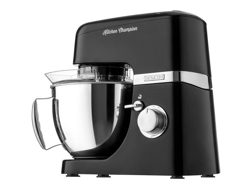 Kuchyňský robot,,Extrémně výkonný 1 000W motor s 6letou zárukou,Robustní celokovové tělo s kovovými převody,3-výstupová konstrukce,Sencor Smart Power & Energy – pro optimální otáčky,Variabilní regulace otáček s pozvolným startem a 8 rychlostními stupni,Funkce pulse,LED osvětlení mixovací nádoby,4,5 l nerezová nádoba s měrnou stupnicí,Transparentní víko mísy s plnícím otvorem pro snadné přidávání ingrediencí v průběhu mixování,Plastové skladovací víko nerezové nádoby,Planetární systém hnětení, míchání a šlehání,- zaručuje bezezbytkové promíchání obsahu mísy,- nástavce rotují kolem své osy a sou