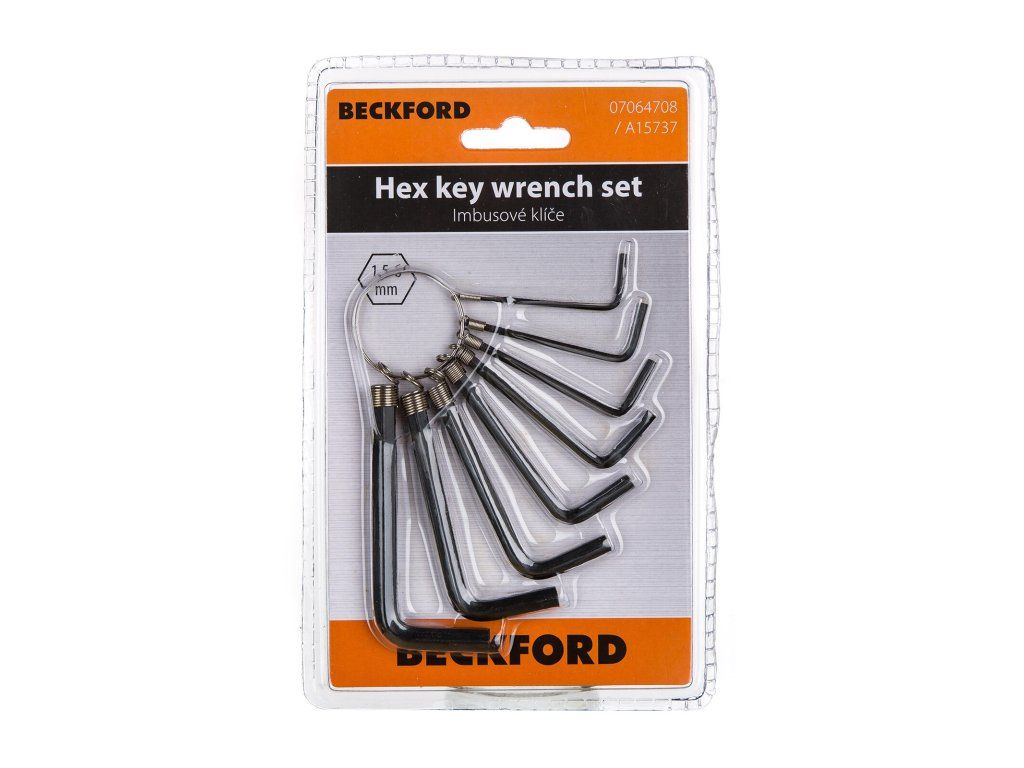 Sada imbusových klíčů obsahuje 8 klíčů ve velikostech 1,5 - 6 mm.