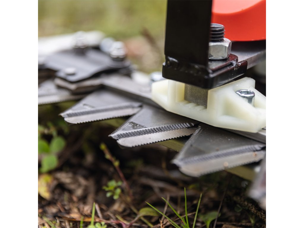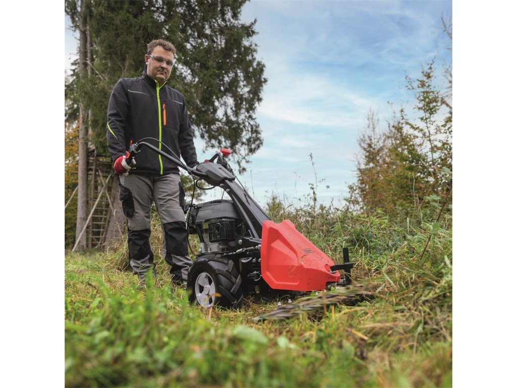 o výměře i kolem 3000 m2. Práci dále usnadní jednoduché startování pomocí startovací šňůry, nastavitelná výše střihu ve třech krocích a možnost výškového nastavení řídítek dle výše postavy nebo povahy terénu.