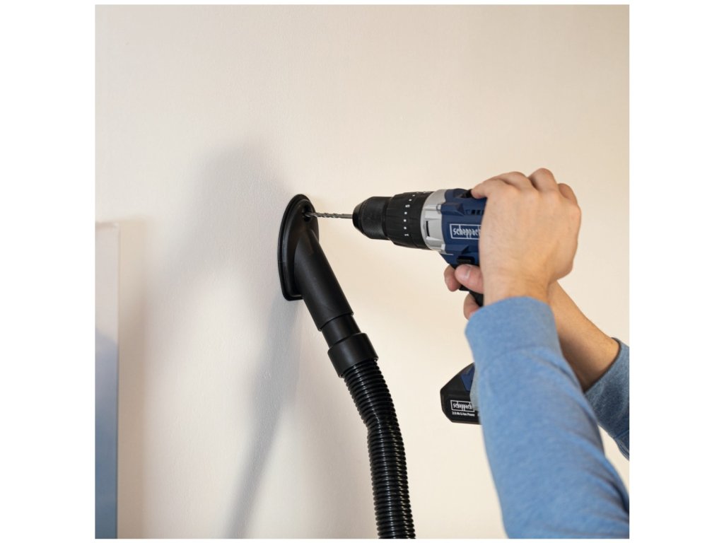 Prach a nečistoty jsou shromažďovány do prachového sáčku o objemu 5 litrů, což umožňuje delší práci bez nutnosti častého vyprazdňování. Systém je vybaven speciální vrtací/odsávací tryskou, kterou lze připevnit přímo pod místo vrtání – okamžitě zachytává vrtný prach a šetří vám následný úklid. Součástí je také plochá sací hubice a foukací tryska, takže využití přístroje je velmi široké.