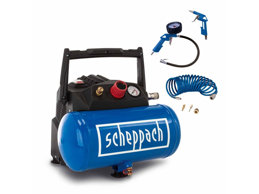 Kompresor Scheppach HC 06 je praktický, lehký a snadno přenosný kompresor s tlakovou nádobou o objemu 6 l a silným motorem 1200 W. Díky moderní bezolejové technologii má minimální nároky na údržbu. Hodí se jak do běžných domácích dílen, tak i pro řemeslníky, pro které je důležitým kritériem nízká váha, malá hmotnost a snadný transport.