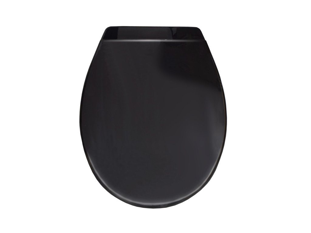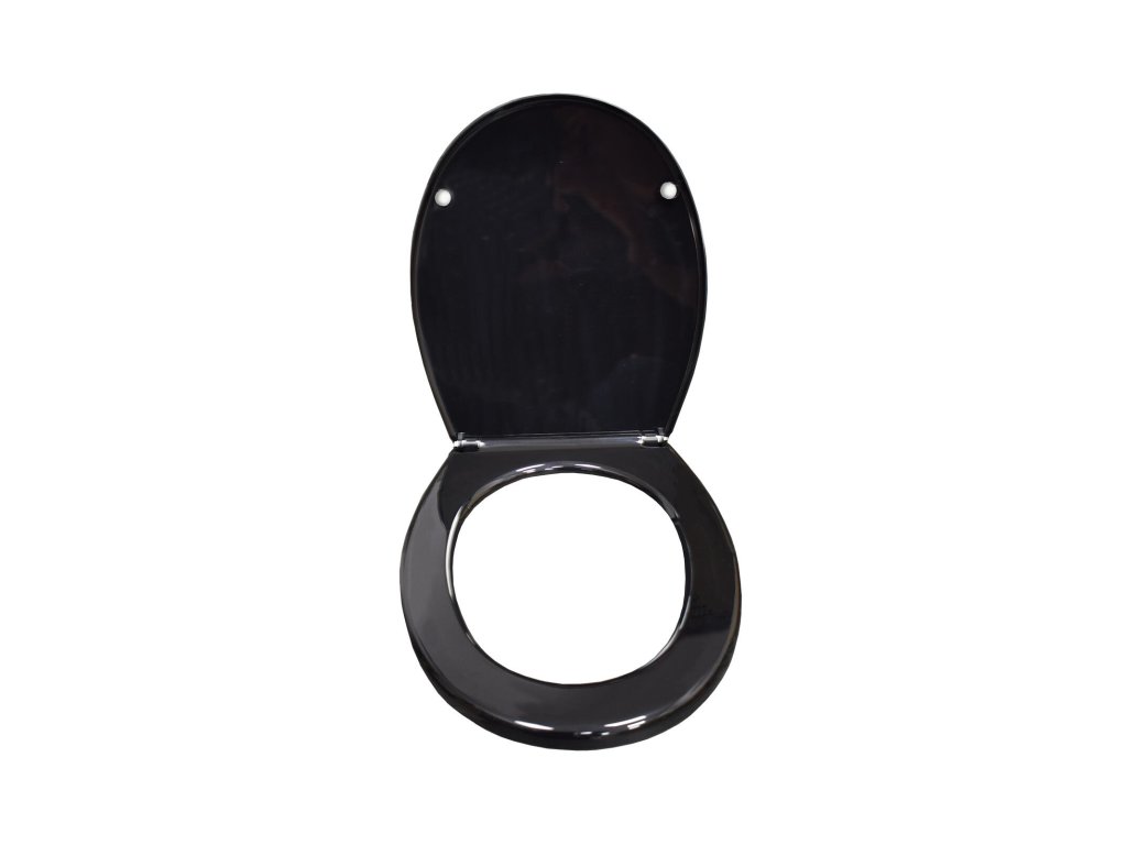 Černé plastové toaletní sedátko má vertikálně a horizontálně nastavitelné držáky, které umožňují snadnou montáž sedátka na většinu toalet.