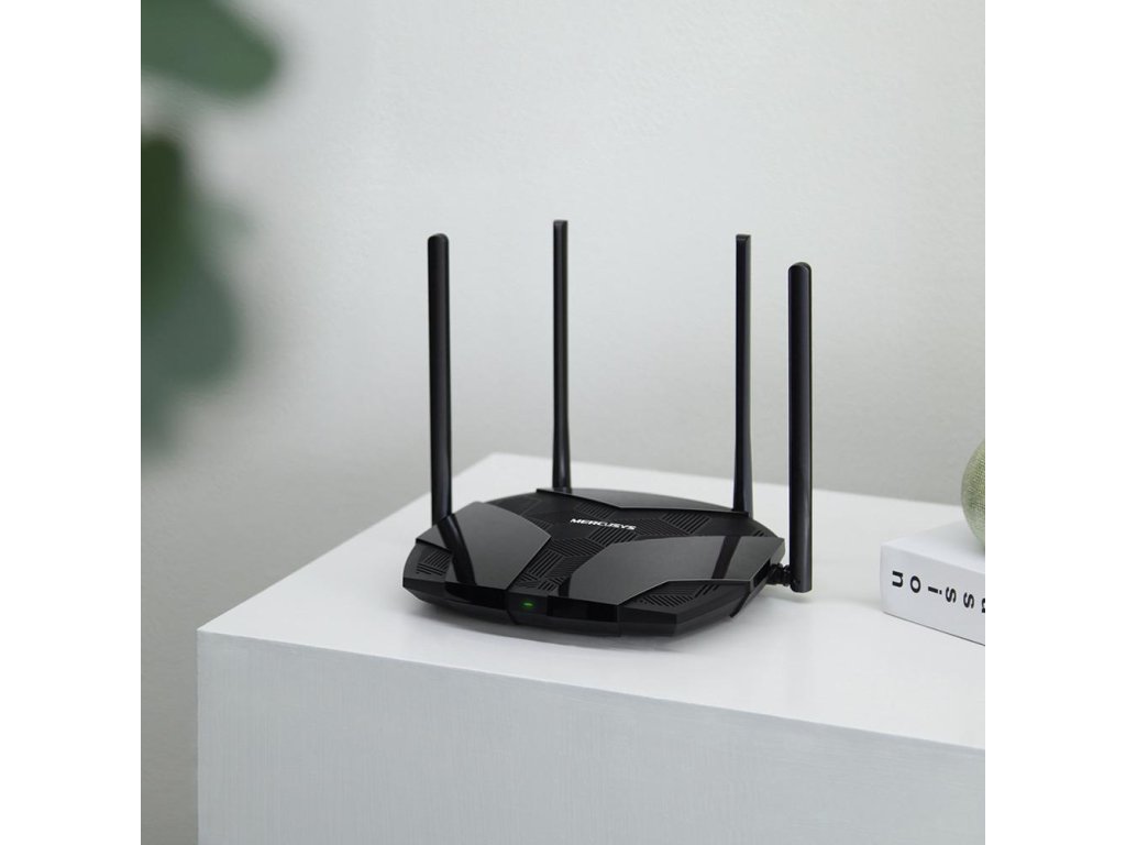 WiFi 6 router,MERCUSYS MR80X,,OPTIMÁLNÍ RYCHLOSTI Wi-Fi 6 – optimální rychlosti Wi-Fi 6 dosahují až 3 Gbit/s a umožňují rychlejší prohlížení webových stránek, streamování a stahování, a to vše současně.,VÍCE ZAŘÍZENÍ, VÍCE ZÁBAVY – podporuje technologie MU-MIMO a OFDMA, které snižují zahlcení sítě a čtyřnásobně zvyšují průměrnou propustnost.,Wi-Fi S VĚTŠÍM DOSAHEM – 4 vícesměrové antény s vysokým ziskem a technologií Beamforming posilují stabilitu připojení po celé domácnosti díky silnému signálu Wi-Fi sítě v každém rohu.,,CELKOVÉ ZABEZPEČENÍ SÍTĚ – nejnovější standard WPA3 zajišťuje vyšší zab