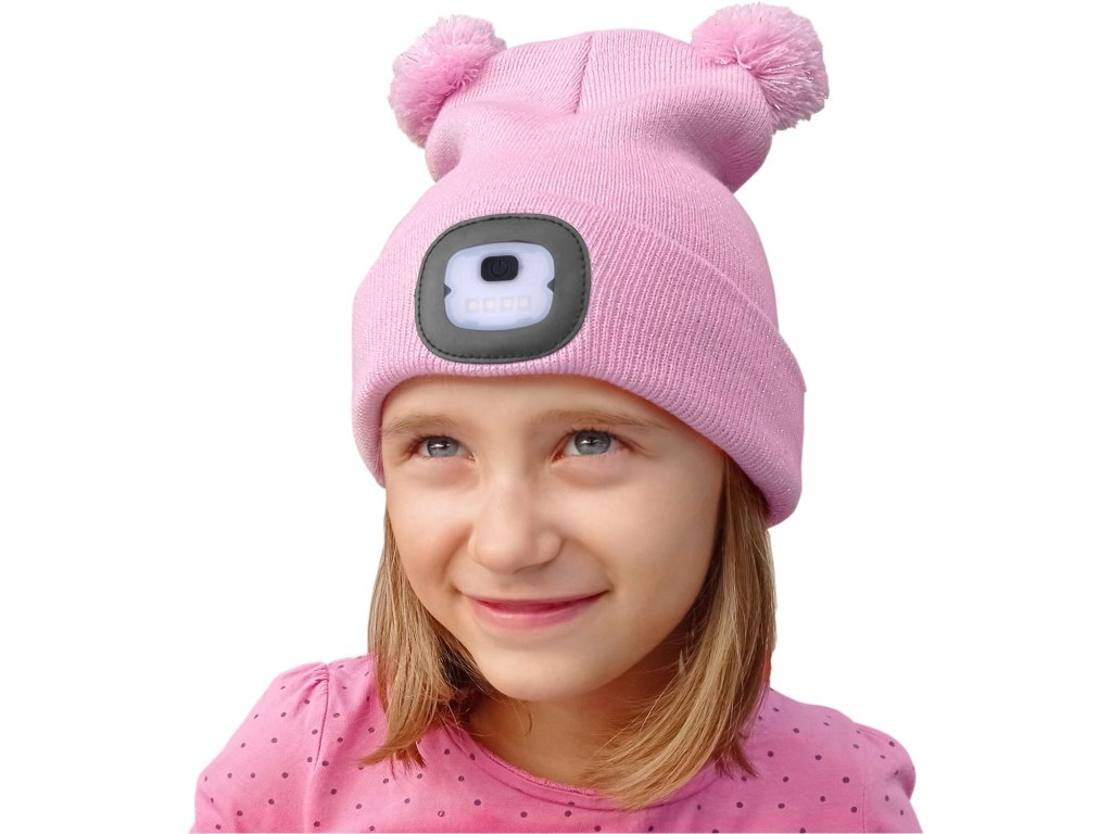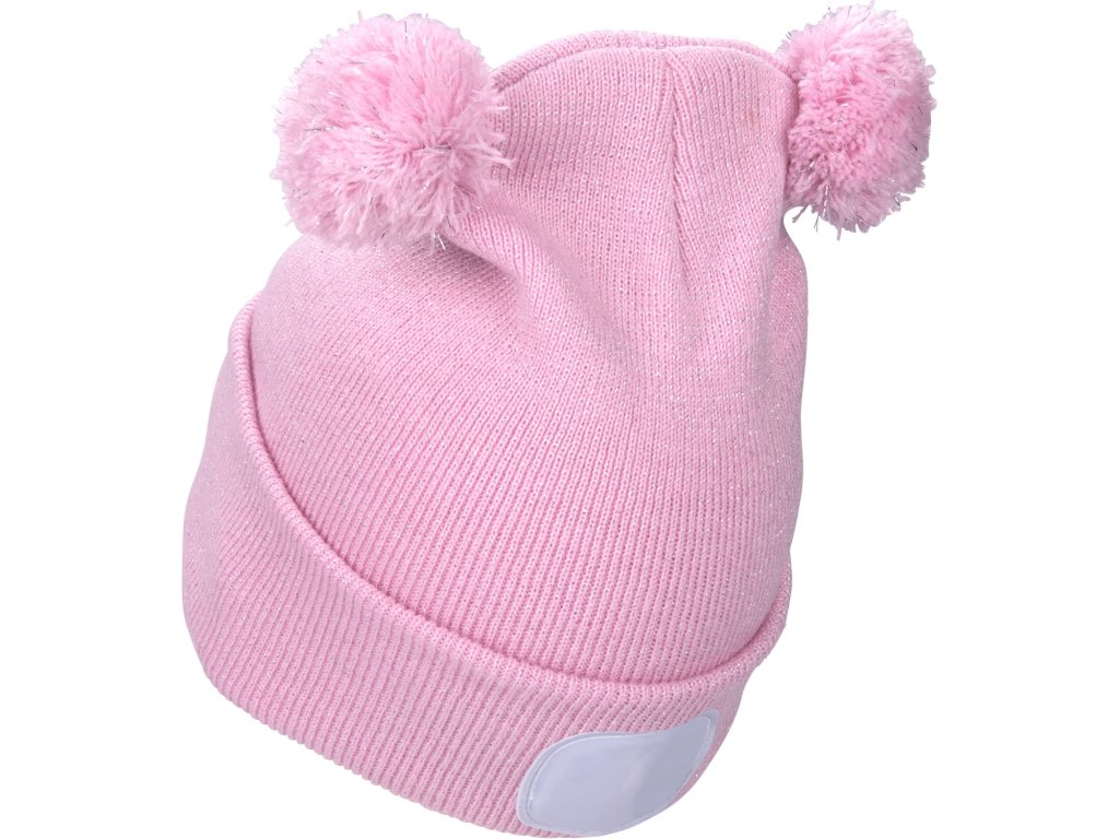EXTOL LIGHT 43458 čepice s čelovkou 4x25lm, USB nabíjení, růžová se třpytkou a bambulemi, dětská