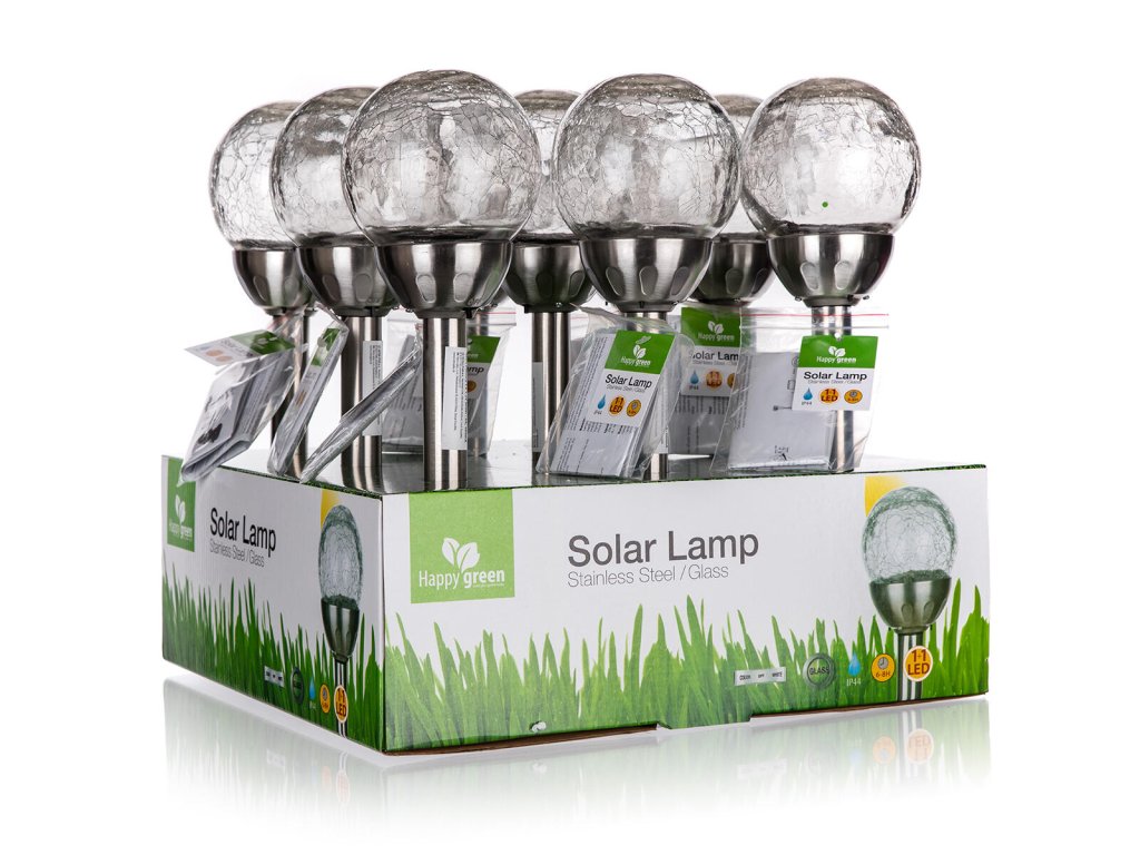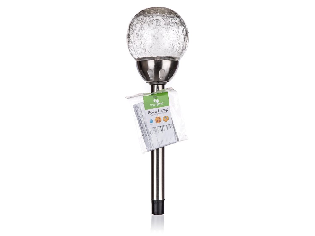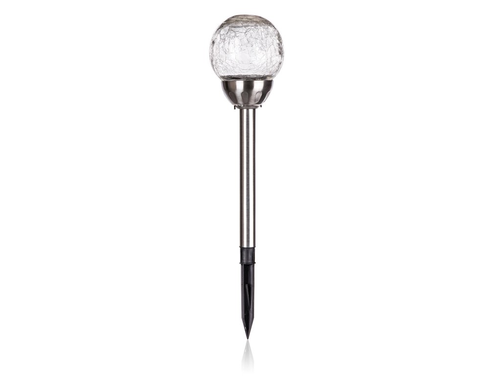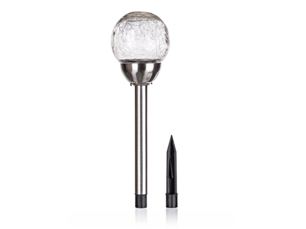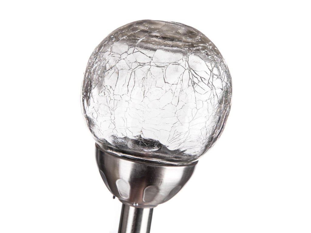 Lampa solární KOULE 10cm v.38,5cm, 2LED čirá, popraskaná