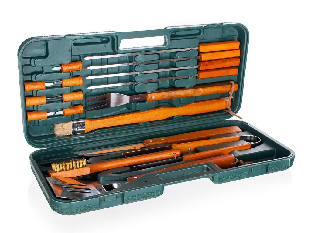 Nářadí grilovací nerez, dřev.ruk., sada 18díl., kufr PH