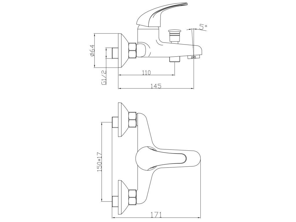 BALLETTO 81103 baterie vanová, 150mm, chrom, 35mm, ram. 9cm