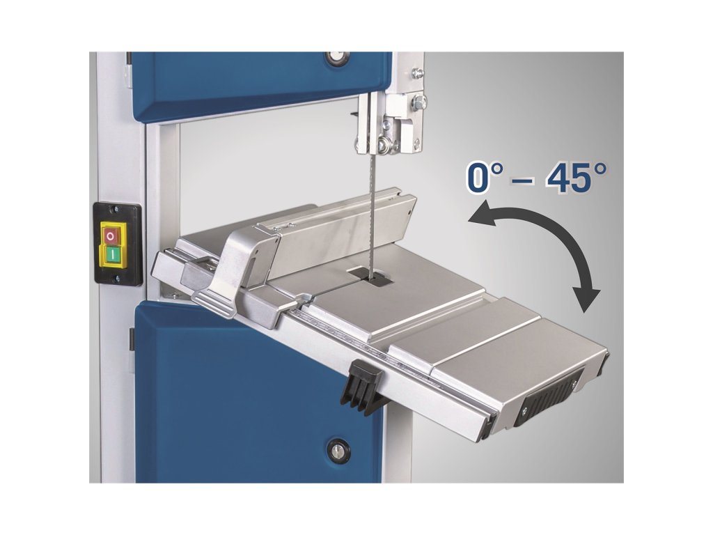 Scheppach HBS 261 je ideální pásová pila pro vaši domácí nebo řemeslnou dílnu. Díky dvěma rychlostem je stroj schopný provádět čisté řezy v různých materiálech i ve dřevu různé tvrdosti. Základem stroje je silný a tichý indukční motor s moderní bezuhlíkovou technologií. Stůl je naklápěcí v rozmezí 0° až 45°, má možnost prodloužení a je vyroben z odolné litiny. Ve výbavě nechybí pevné posuvné pravítko s rychloupínáním a přesné úhlové pravítko. Zbytek konstrukce je celokovový. Pila má vysoký prořez 120 mm a díky systému vodících kladek, které nedovolí pilovému listu odchýlení, je výsledný řez velmi přesný. Díky výklopné boční stěně je výměna pilového pásu velmi snadná. Základna stroje je vybavená otvory, které dovolují její případné pevné přichycení k pracovní desce. Stroj se dodává se dvěma pilovými pásy.