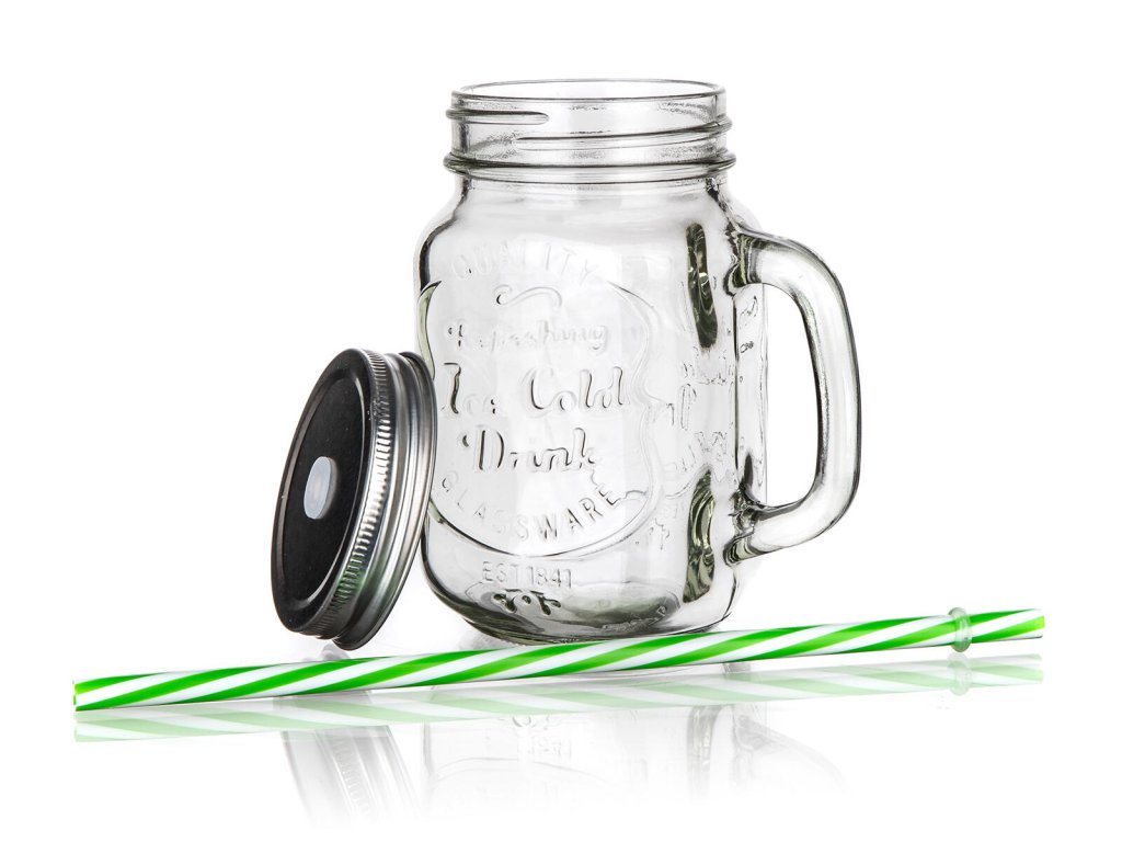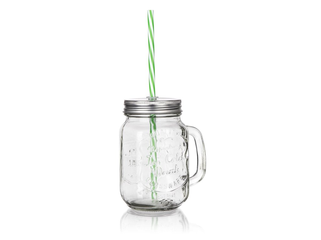 Hrnek 450ml MADEIRA, s víčkem a brčkem, sklo/kov/PH