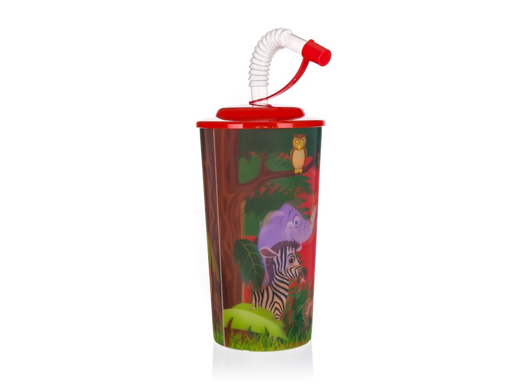 Plastový kelímek s víčkem a brčkem s dekorem ZOO udělá radost každému dítěti.