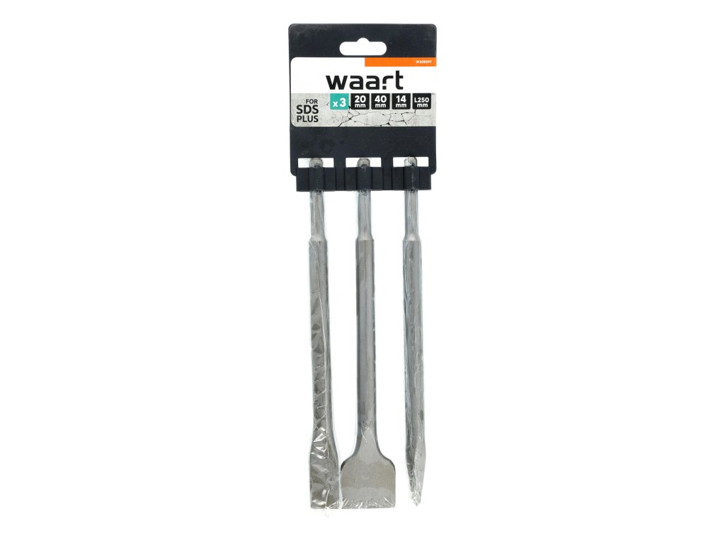 Kombinace tří sekáčů pro sekání, bourání, drážkování, rozbíjení zdiva, betonu, obkladů, dlažeb, kamene ... Sada plochých sekáčů 20/40 x 250 mm, špičatý sekáč 14 x 250 mm, upínání SDS-plus, 3 ks.