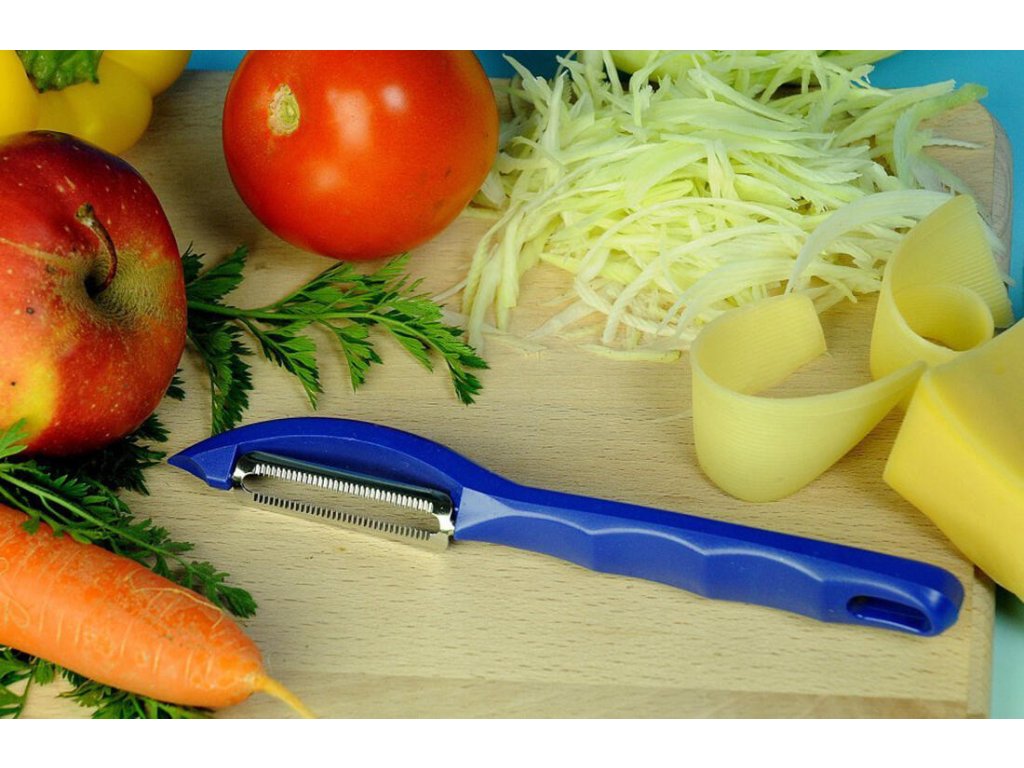 Oloupe brambory, jablka, kivy, rajčata, mrkev, křen, nakrouháte i zelí na přílohy.