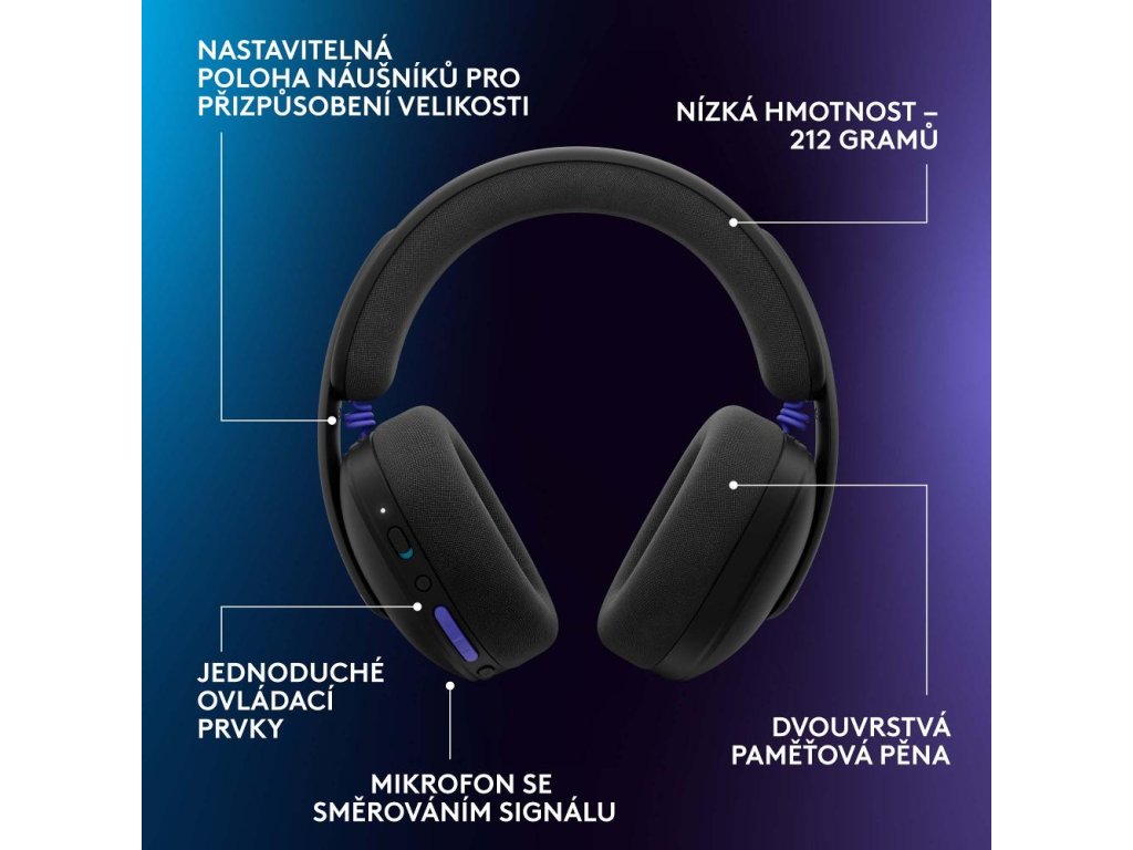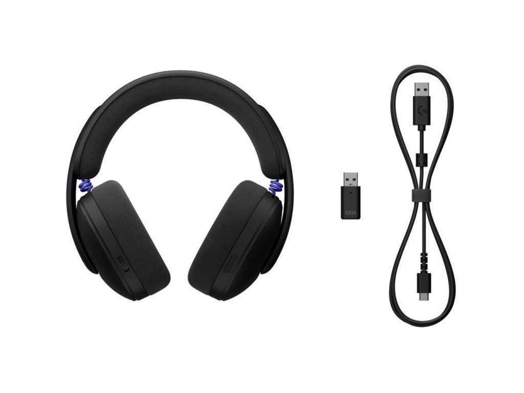Sluchátka,LOGITECH G325 Black,PN: 981-001524,,Platforma: Nintendo Switch, PC, Playstation 4, Playstation 5, Xbox,Druh: Bezdrátová,,Dosah signálu: 30 m,Připojení: 2,4 GHz, Bluetooth, USB A,Typ konektoru: USB A,Doba přehrávání: 24 h,Verze BT: 5.2,Frekvenční rozsah: 20-20000,Impedance: 32 Ohm,Počet měničů: 2,Průměr měničů: 32 mm,Materiál měniče: Paměťová pěna,,Vedení kabelu: Jednostranné,Odnímatelný kabel,Ovládání hlasitosti,Ovládání přehrávače,Herní režim,Redukce šumu,Ztlumení mikrofonu,Vypínač,,Typ nabíjecího konektoru: USB-C,,Rozměr (VxŠxH): 19,4 x 18,7 x 8,1 cm,Hmotnost: 212 g,Barva: Černá