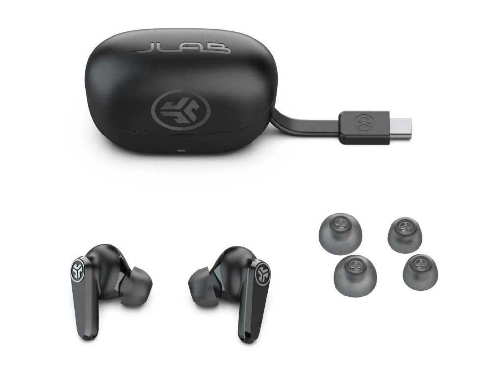 Bezdrátová sluchátka, JLab Go Pods ANC Headphones black,, Špuntová, Mikrofon Integrovaný, Verze BT 5.4, Aktivní potlačení hluku (ANC), ANC při hovorech, Impedance 32 Ohm,, Redukce šumu, Hlasový asistent, Audio kodeky SBC, AAC, Citlivost 105 db, Frekvenční rozsah 20 - 20 000 Hz, Počet měničů 2, Průměr měničů 6 mm, Dosah signálu 10 m,, Typ ovládání dotykové, Ovládání přehrávače, Ovládání hlasitosti, Ovládání hovorů, Doba přehrávání 30 h, Doba nabíjení 1,5 h, Doba nabíjení stanice 2 h,, Kapacita baterie sluchátek 40 mAh, Kapacita baterie stanice 500 mAh, Indikátor stavu nabití, Typ nabíjecího ko