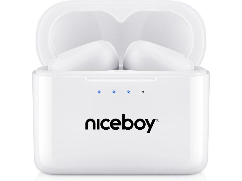 Bezdrátová sluchátka,NICEBOY HIVE Podsie 4 Bílá,,Špunty True Wireless,Konstrukce uzavřená,Mikrofon,Typ připojení BT 5.4,Podporované kodeky AAC, SBC,,Přepínání skladeb,Přijímání hovorů,S ovládáním hlasitosti,Hlasový asistent,S aplikací ION,,Vyměnitelné špunty,Frekvence od 20 Hz,Frekvence do 20000 Hz,Citlivost 110 - 3dB,Velikost měniče 8 mm,Impedance 16 Ohm,,Všesměrové snímání,Stupeň krytí IP54,Maximální výdrž baterie - pouzdro 25,5 h,Maximální výdrž baterie - sluchátka 9,5 h,Maximální výdrž baterie 35 h,Nabíjení USB-C,Aplikace,Výška 4,4 cm,Délka 2,4 cm,Šířka 5,3 cm,Hmotnost 0,004 kg,,Obsah bale