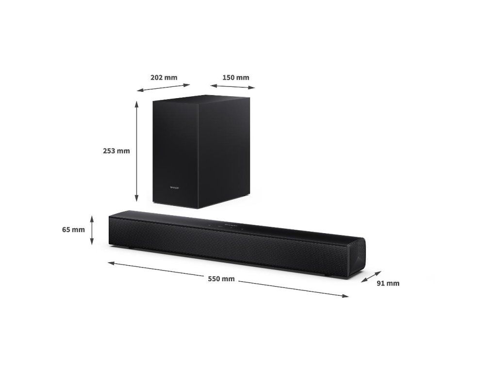 Rozměry systému soundbar: 550 x 65 x 91mm