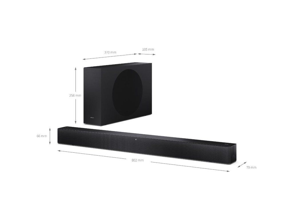 Rozměry systému soundbar: 802 x 65.5 x 78.8mm