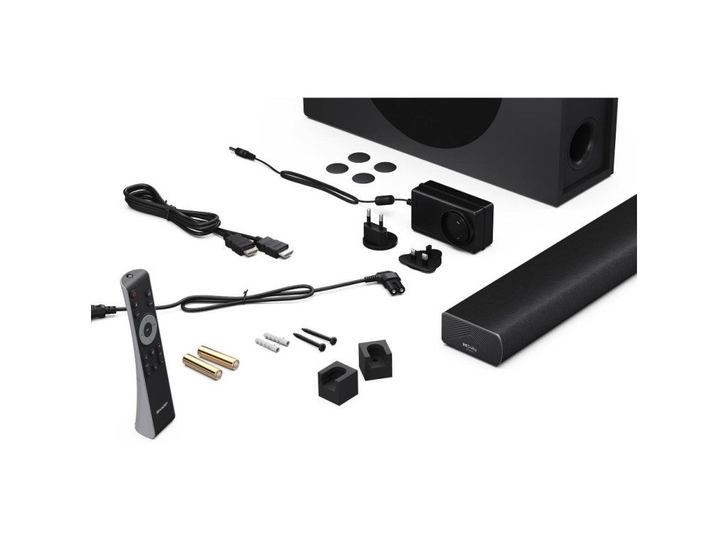 Ultratenký soundbar, který nezakrývá obrazovku vašeho televizoru. S technologiemi Dolby Atmos®, DTS Virtual:X® a bezdrátovým subwooferem si užijete 3D zvuk jako v kině.