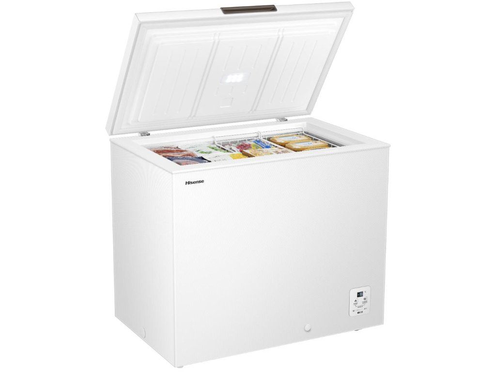 Pultový mrazák,Hisense FT282D4AWYLA,,Truhlicová mraznička,Digitální teplotní ukazatel pro mrazničku,Funkce rychlého zmrazení,LED display,LED osvětlení,Ochrana proti zamrznutí FreezeProtect -15 °C,Chladící kapalina R600A,,Rozměry V x Š x H (mm) 842 x 963 x 632,Celkový objem : 217 l,Třída energetické účinnosti A,Třída emisí hluku šířeného vzduchem C,Zmrazovací výkon 12,0 kg/24h,Roční spotřeba energie (v kWh) 84,Napětí (V) 220-240 V,Kmitočet (Hz) 50 Hz,Délka přívodního kabelu 150 cm,Netto váha 51,0 Kg,Brutto váha 55,0 Kg,