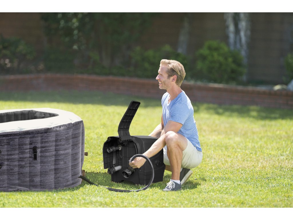 Díky samoinstalačnímu mechanismu je instalace vířivé vany rychlá a jednoduchá. PureSpa stačí zapojit do zásuvky a sama se během okamžiku nafoukne.