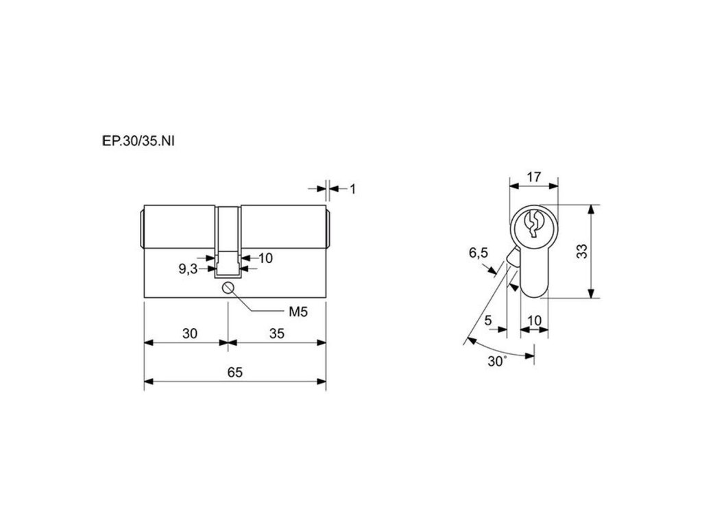 Vložka cylindrická stavební EP 30+35 3 kl. Ni RICHTER.