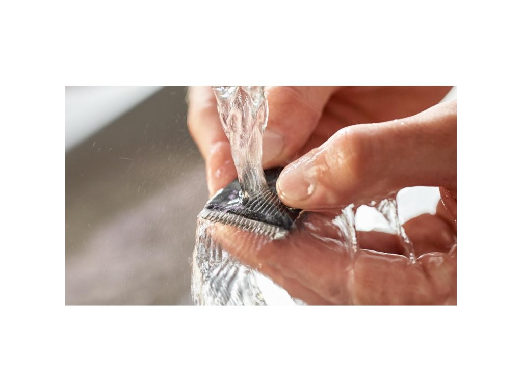 Hlavu zastřihovače je možné odejmout a oplachovat pod tekoucí vodou.
